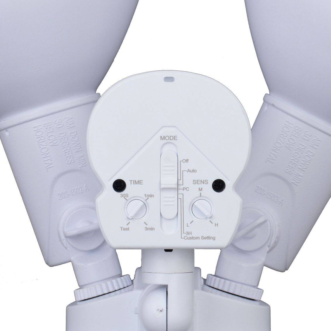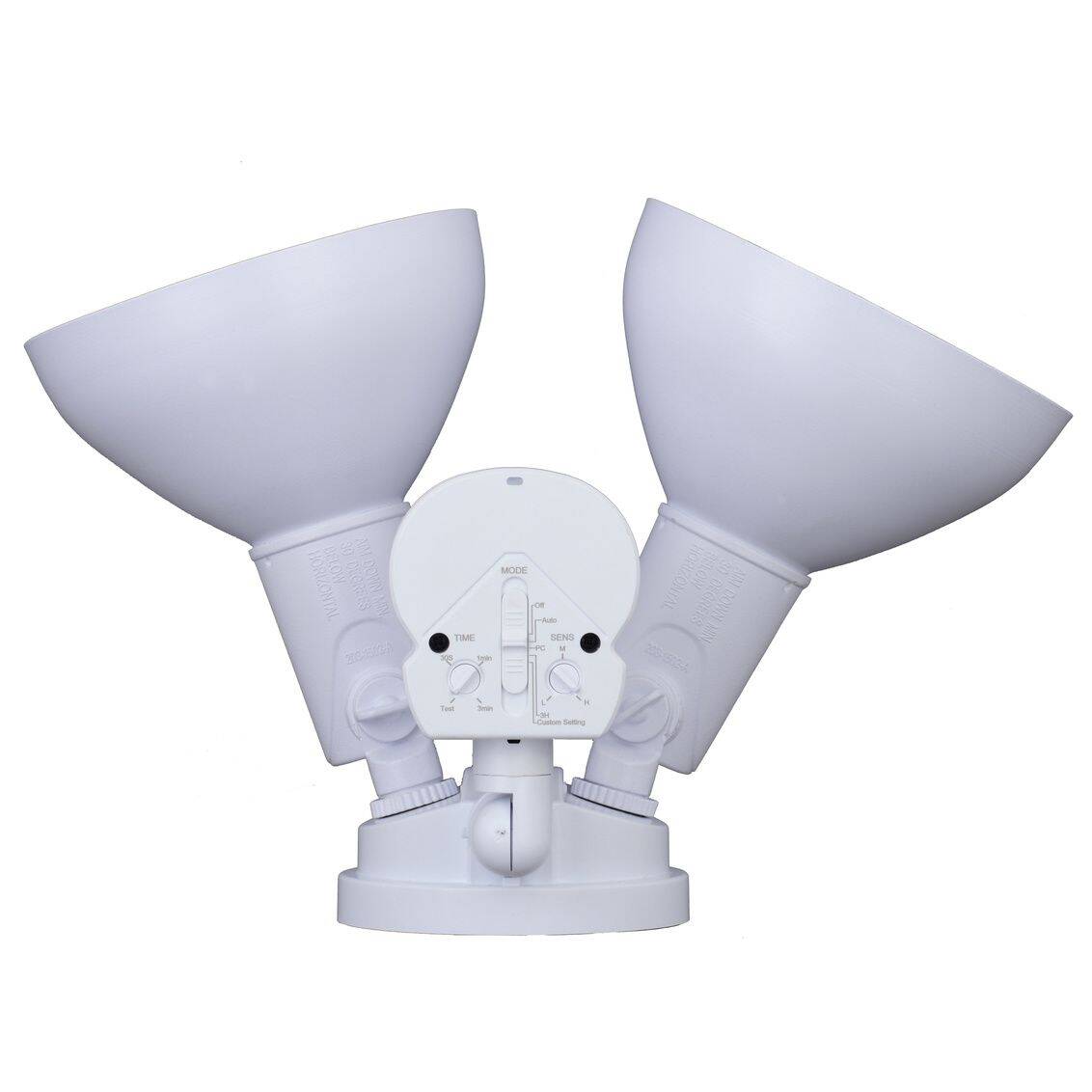 This 2-light outdoor motion sensor security light provides low-level approximately 30% ambient lighting throughout the night and bright 100% high level when motion is detected. The light heads and sensor are fully adjustable to keep your home’s exterior brighter at dusk, dimmer at night, and instantly bright when motion is detected. Customize your lighting options with 5 modes of operation plus adjustable motion sensor sensitivity. Suitable for wall or eave mounting with a wide detection area of 240 degrees and 85 feet. This Dualux security flood light expands the functionality, safety, and security of your home’s outdoor spaces with bright, reliable light when and where it is needed most.