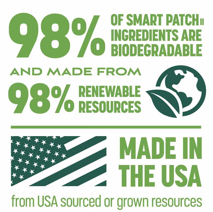 - 98% of Smart Patch ingredients are biodegradable and made from 98% renewable resources.