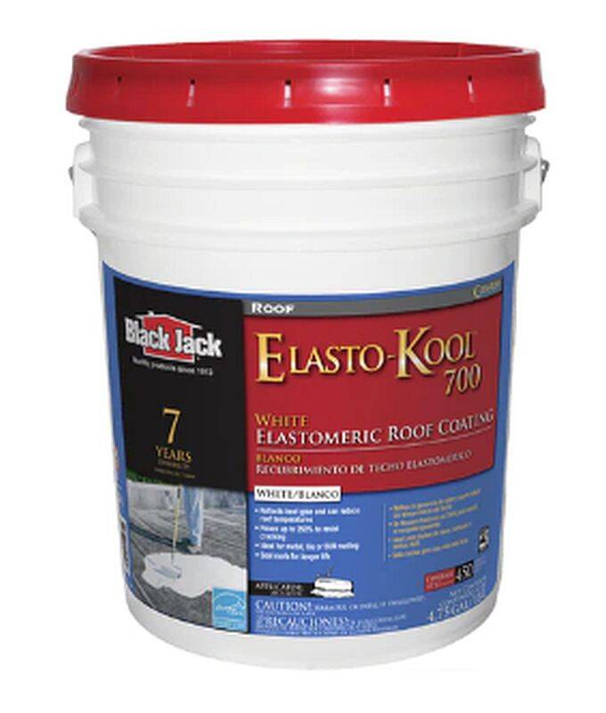 Black Jack® Elasto-Kool 700 White Elastomeric Coating is a quality, highly flexible, white acrylic latex roof coating. This high performance product resists cracking and peeling, while offering tremendous durability and long term life. It expands and contracts up to 250% with the roof's movement to resist damage. The coating provides an excellent, highly protective barrier which reflects the sun's heat and destructive UV rays. In turn, this helps to cool surfaces and leads to a reduction of interior temperatures.