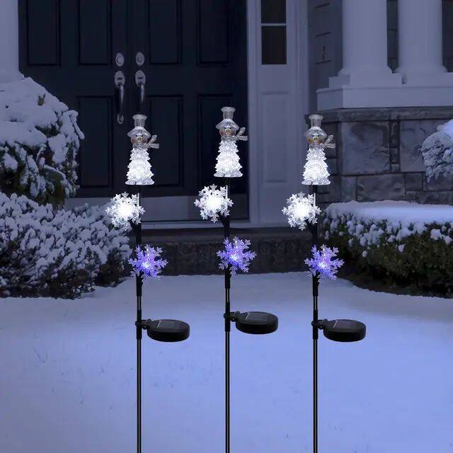 Solar Snowman & Snowflake Stake With 3 LED Lights