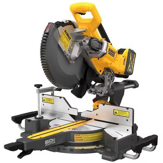 | Includes | (1) DCS781 60V MAX* Brushless Cordless 12 in. Double Bevel Sliding Miter Saw, (1) DCB609 20V/60V MAX* FLEXVOLT® Battery, (1) DCB1106 6amp Charger, (1) Blade, (1) Blade Wrench, (1) Material Clamp, (1) Stabilizer Bar, (1) Vacuum Adapter, (1) Dust Bag, (2) Base Extensions |