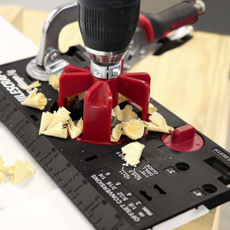 • Easily set your cup hole depth on the included 35mm high-speed steel bit using the built-in depth setting fixtures