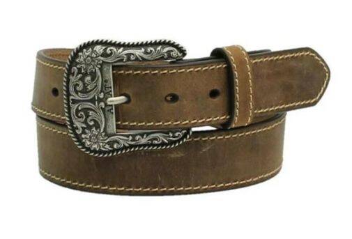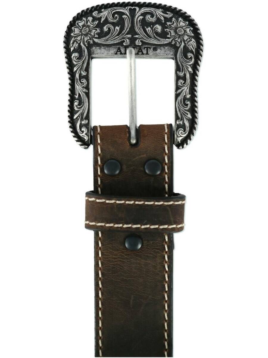 This classic Western leather belt is designed with heavy stitched edges and a beautiful Ariat buckle. The perfect accessory to make all your outfits complete.