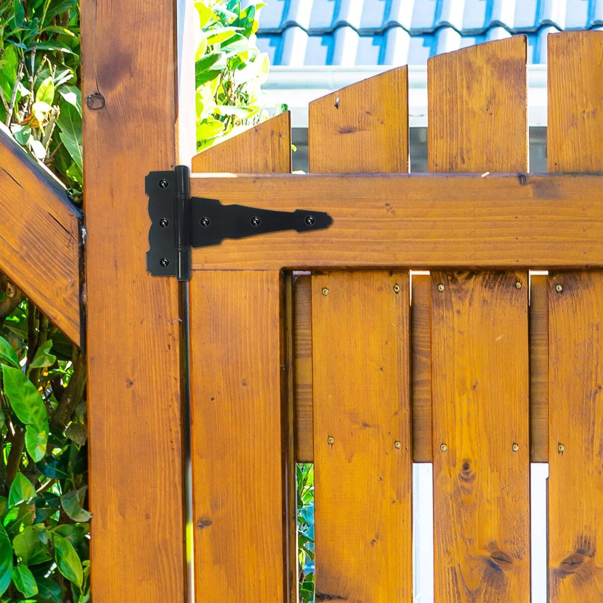 Includes Two (2) heavy duty decorative 6? tee hinges with nylon bushings and colour matching fasteners
