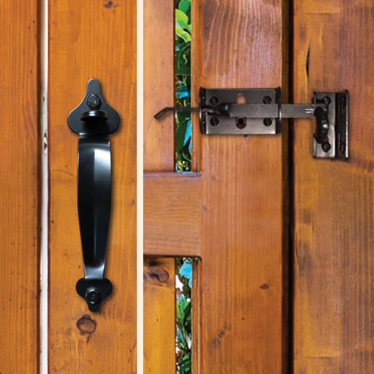 The beauty of our gate hardware comes from its functionality and discreet elegance. The classic design of our thumb latch complements a wide variety of materials. Its powder coated black finish and galvanized steel construction accent your project while also providing you the strength and longevity you need.