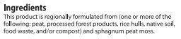 Ingredients Peat, Processed Forest Products, Rice Hulls, Native Soil, Foor Waste, and/or Compost and Sphagnum Peat Moss