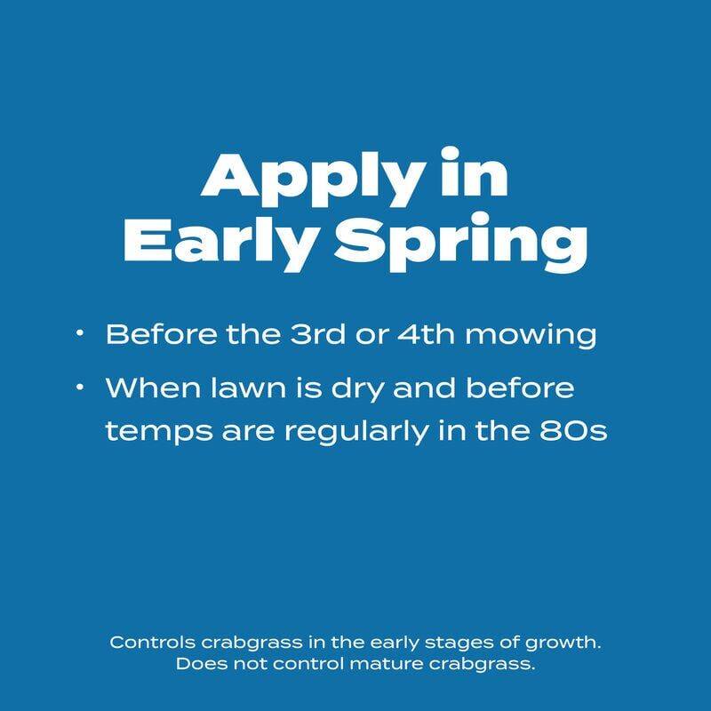 - Apply pre-emergent weed killer plus fertilizer to a dry lawn in early spring (prior to 3rd or 4th mowing) before temperatures are regularly in the 80s; rain, snow, or freezing conditions after application will not affect the performance of this product