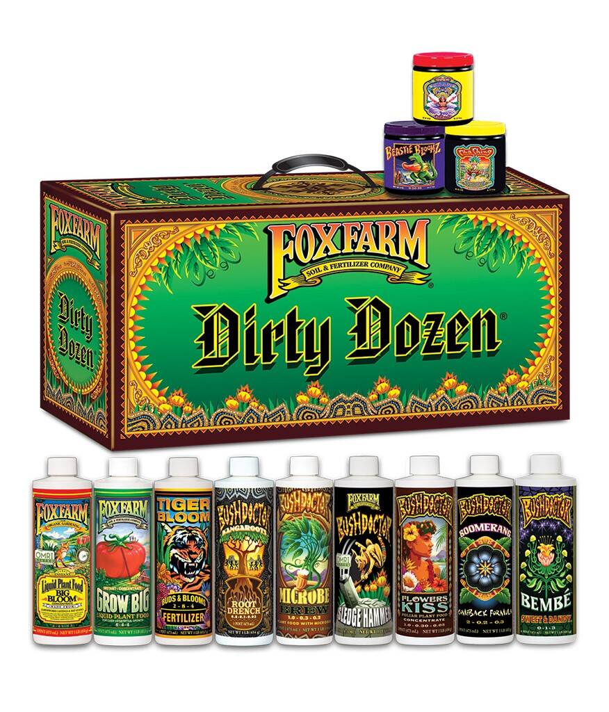 | Includes | (1) Big Bloom 16 0z Bottle, (1) Grow Big 16 oz Bottle, (1) Tiger Bloom 16 oz Bottle, (1) Kangaroots 16 oz Bottle, (1) Microbe Brew 16 oz Bottle, (1) Bembe 16 oz Bottle, (1) Sledgehammer 16 oz Bottle, (1) Flowers Kiss 16 oz Bottle, (1) Boomerang 16 oz Bottle, (1) Open Sesame 6 oz tub, (1) Beastie Bloomz 6 oz tub, (1) Cha Ching 6 oz tub |