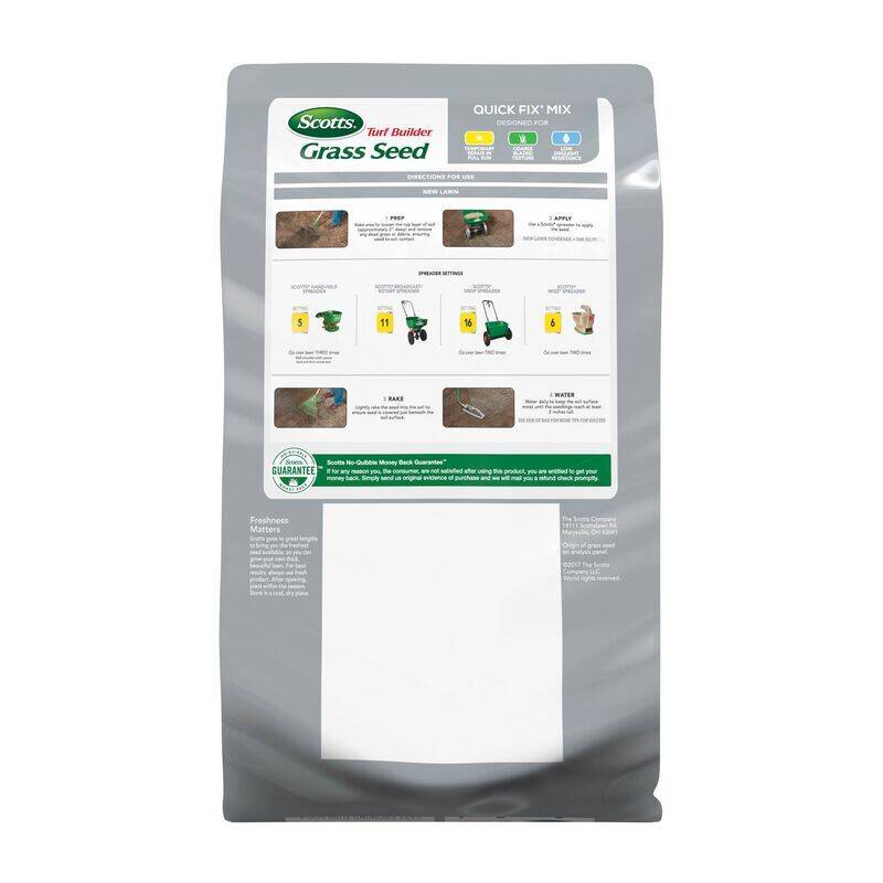 - One 3 lb. bag of Scotts® Turf Builder® Grass Seed Quick Fix® Mix covers up to 500 sq. ft.
