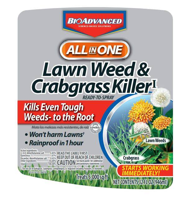 All-In-One Lawn Weed and Crabgrass Killer Ready-To-Spray kills even tough weeds- to the root, PLUS controls listed grassy weeds like crabgrass