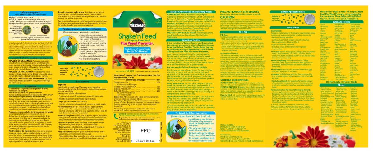 With one application of Miracle-Gro® Shake ‘n Feed® All Purpose Plant Food Plus Weed Preventer1, you can feed your plants AND prevent weeds for up to 3 months! For maximum weed prevention, apply the product as early as possible during the growing season before weeds have emerged. Use it in your garden bed around established flowers, vegetables, groundcovers, shrubs, and trees. Keep your garden looking its best with the help of Miracle-Gro®.