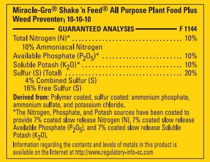 | Application | Sprinkle evenly over the entire soil surface at the application rate of 4.8 oz. per 10 sq. ft. For best results, gently rake and lightly water in after application. |