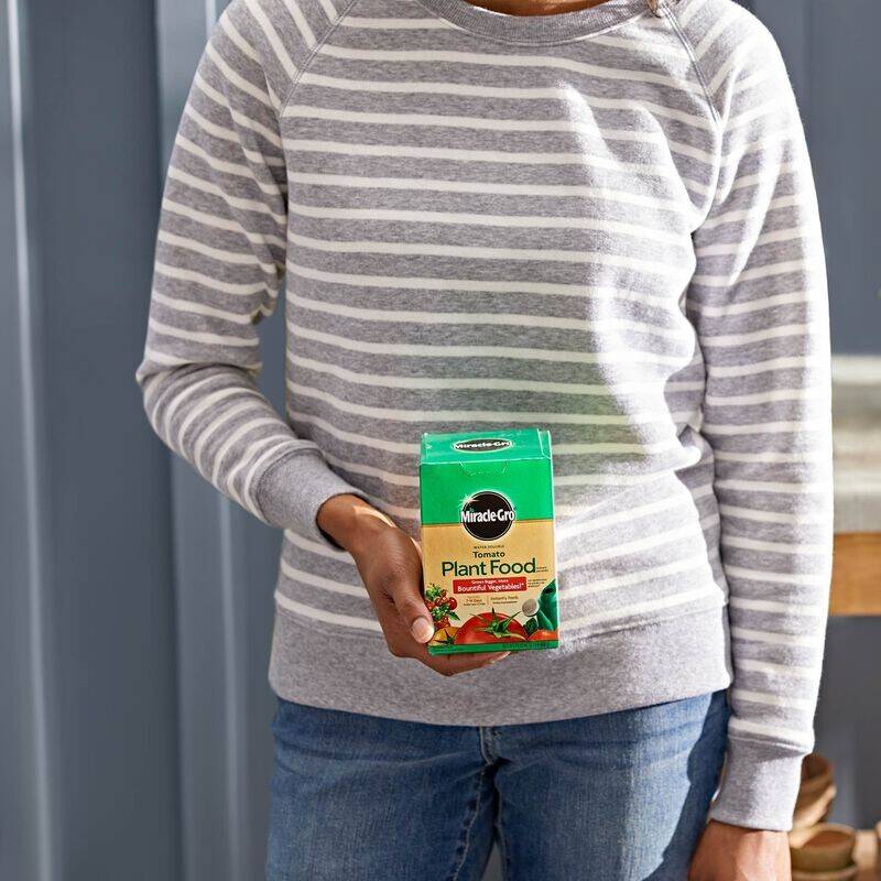 Picture a garden full of juicy tomatoes, crunchy carrots, and flavorful peppers. Miracle-Gro® Water Soluble Tomato Plant Food can help you grow that garden. This water soluble fertilizer grows bigger, more bountiful vegetables (compared to unfed plants). It feeds instantly, and is great to use on all types of vegetables, including tomatoes, cucumbers, squash, peppers, and carrots. Use watering can or Miracle-Gro Garden Feeder to apply. If using a watering can, mix 1-½ tablespoons (the large end of the enclosed scoop) per 1-½ gallons of water. For Miracle-Gro® Garden Feeder™, fill the jar to the top of the label. See feeder package for additional instructions. 3 lbs. of Miracle-Gro® Water Soluble Tomato Plant Food feeds approximately 1,200 sq. ft. of garden area. Once seedlings are well established, feed at normal recommended rates. For best results, use Miracle-Gro® Water Soluble Tomato Plant Food to feed your plants every 7 to 14 days.