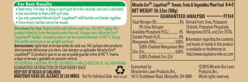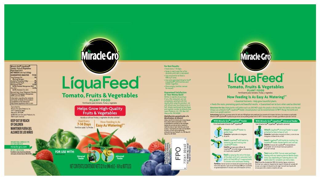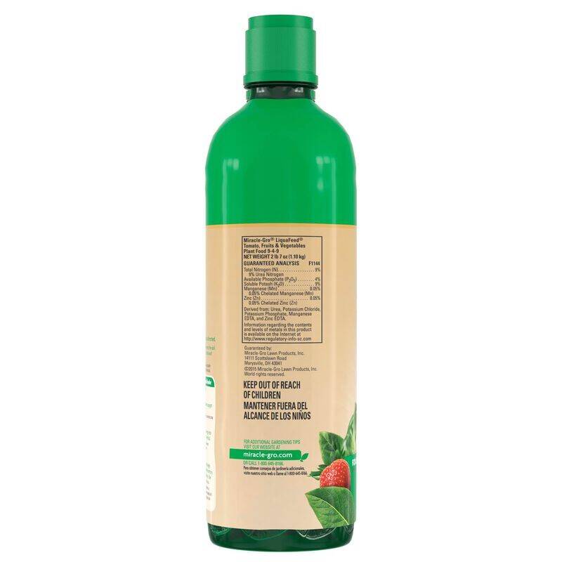 Help grow high-quality fruits and vegetables with the help of Miracle-Gro® LiquaFeed® Tomato, Fruits & Vegetables Plant Food. Feeding is as easy as watering. Just use a Miracle-Gro® LiquaFeed® Feeder and apply to your plants every 1-2 weeks.