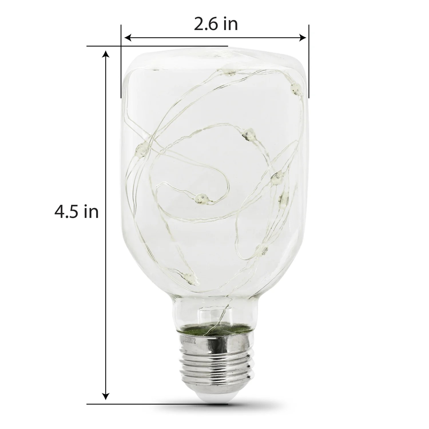 Create stunning pendant lights, string lights, or party lights with red, green, and blue Square LED Fairy Light Bulbs from Feit Electric. These unique clear glass decorative bulbs with color-changing mini-LED lights install into any medium base socket for a distinctive look to any indoor space. Each mini light fades from color to color. Use them in the living room or dining room for decorative ambient light, or in bedrooms for reading lights and night lights that don’t glare and won’t strain the eyes. These bulbs are damp-rated, for indoor locations and covered outdoor use and are rated to last 20,000 hours.