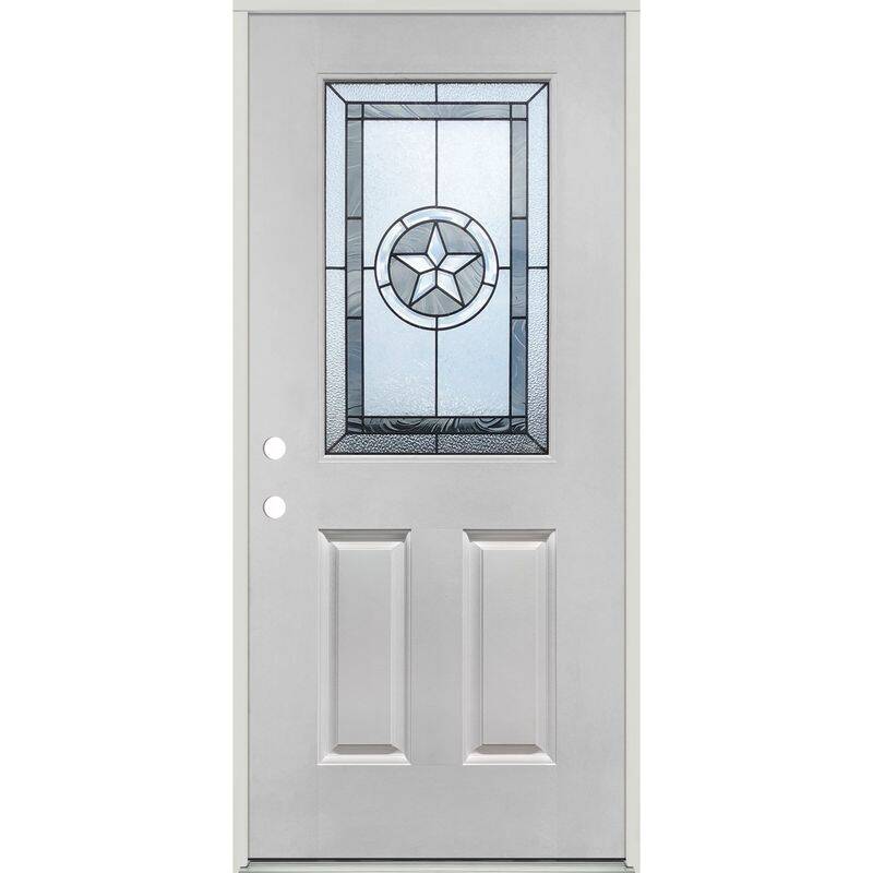 36-Inch X 80-Inch Fiberglass Textured Star Patina Half Lite Right Hand Prehung Exterior Door