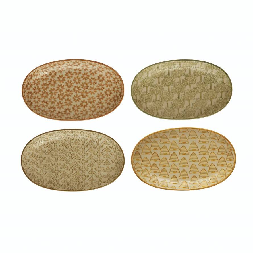8 1/2-Inch x 4 3/4-Inch Stoneware Hand Stamped Pattern Decorative Plate In 4 Assorted Styles