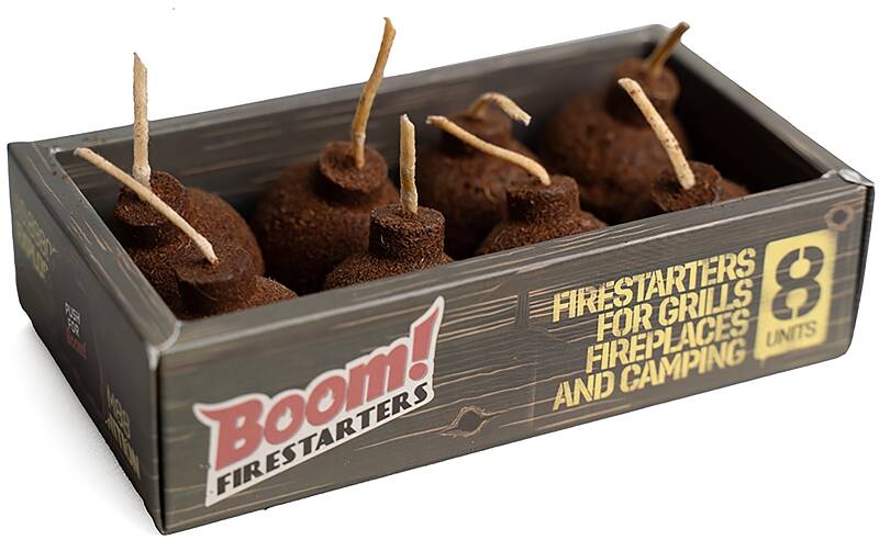 Jealous Devil Boom! Firestarter's patent-pending shape and formula ensure maximum performance. Boom! Is waterproof, burns for over 20 min with max temps above 1000 deg and emits a 12 in high-flame making it one of the most powerful firestarters on the market. All boom, no bust. Clean and odorless burn. Safe for both indoor and outdoor use. No black or acrid smoke or strong odors typical of most other firestarters on the market. A single boom is equivalent to 4 to 6 traditional starters. Never use multiple firestarters again. No matter if its lump charcoal, wet firewood or jealous devils onyx binchotan, a single boom is all you need to get rolling. Shaped like a bomb because that's awesome. Every bbq is bomb with boom!.