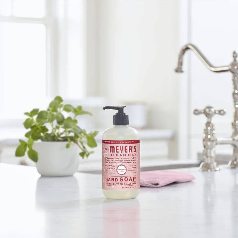 Mrs. Meyer's products are made with cruelty-free formulas and are Leaping Bunny certified. Cool Peppermint, touched with a hint of vanilla, smells perfectly heartwarming