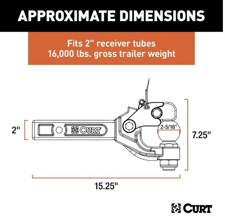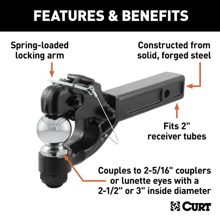 | Suitable for Use With | (Pintle Hook): Any lunette ring with a 2-1/2 inch or 3 inch inside eye diameter; (Trailer Ball): Any 2-5/16 inch coupler |