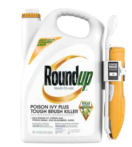 Roundup® Ready-To-Use Poison Ivy Plus Tough Brush Killer kills over 200 types of weeds, including poison ivy, poison sumac, poison oak, wild blackberry and kudzu. Its fast-acting formula begins absorbing on contact and provides visible results in 24 hours. It's easy to use, just spray the leaves to kill the root. This product kills weeds to the root so weeds don't come back. Roundup® Ready-To-Use Poison Ivy Plus Tough Brush Killer is great for use on patios and walkways, around homes and buildings, along paths and fences, or other areas where tough weeds are growing. Rain or watering 30 minutes after application will not wash away effectiveness. Roundup® Ready-To-Use Poison Ivy Plus Tough Brush Killer is the easy way to control allergy causing plants around your yard.
