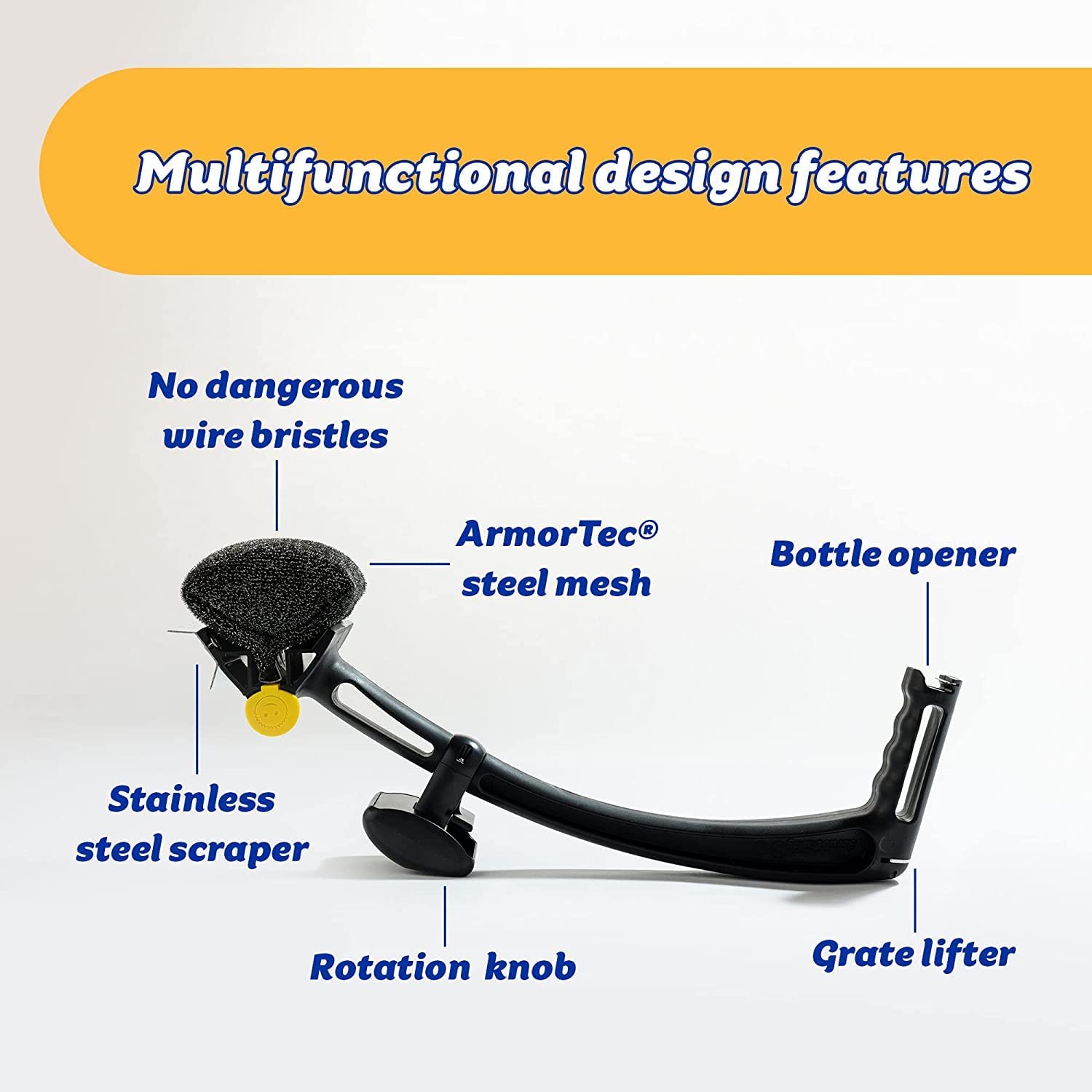 | Application | Scrubs and Scrapes Grills, Lifts Grates, Opens Bottles |
