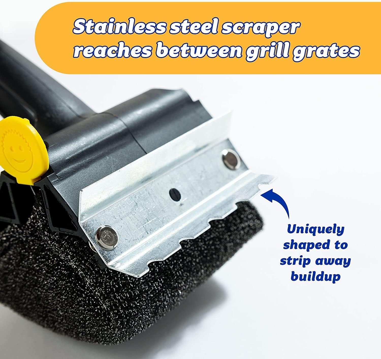 - Strip away charred buildup with integrated stainless steel scrape.