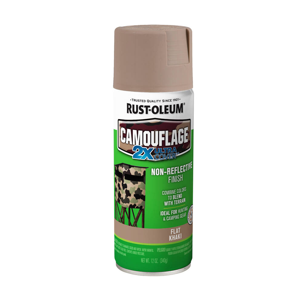 Rust-Oleum 2X Ultra Cover Camouflage Spray Paint provides a non-reflective, ultra flat finish for maximum hiding on interior or exterior surfaces. Fast drying camo spray paint offers quick transformation on surfaces, hunting gear, stencils and more.