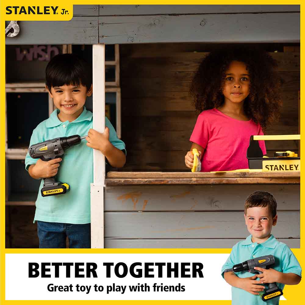 Pretend Play Tools open a new world of play for your kids. Our Stanley Jr Battery Powered Drill feels like the real thing and even moves, makes sounds and lights up like a real drill.