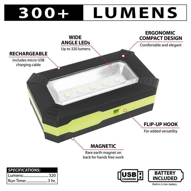 • Specifications: 320 Lumens, 3 hr run time, 1000mAh, 3.7V ; Dimensions: 3 x 1.75 x 0.8" (75 x 44 x 20mm)