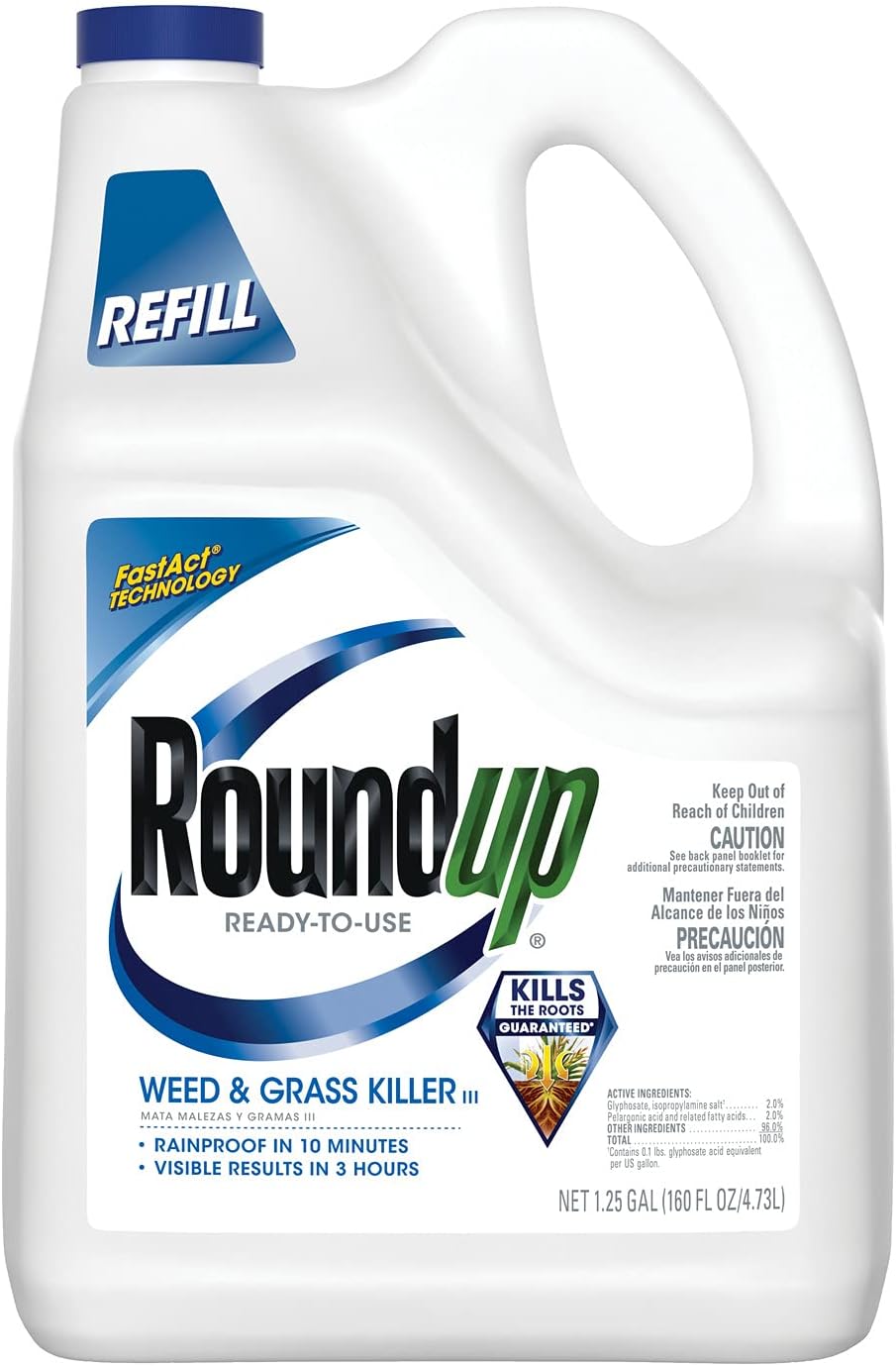 RoundUp® Ready to Use Weed and Grass Killer Refill- kills the roots with FastAct® technology and is rainproof in 10 minutes. Visible results in 3 hours.