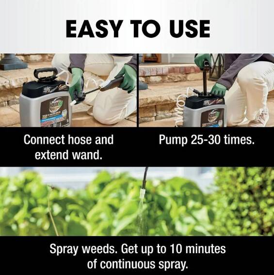 - The Pump ‘N Go® 2 Sprayer with an extendable wand provides up to 10 minutes of continuous spray and provides greater accuracy without bending over