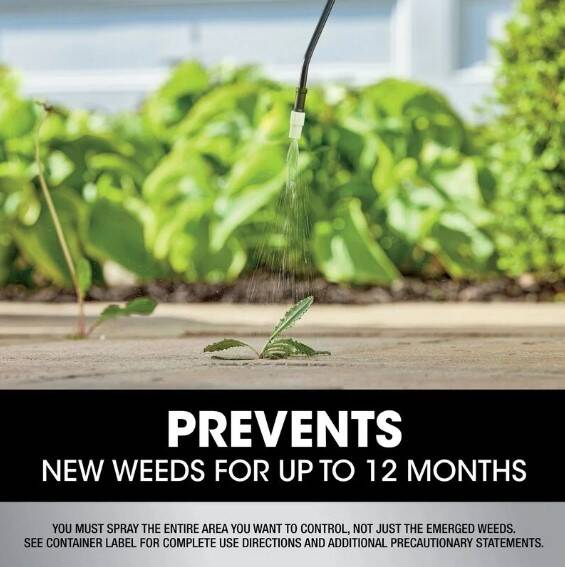 - Use this weed preventer where you want to kill existing weeds AND prevent new weeds for up to 1 year, such as cracks and crevices in driveways, sidewalks, and walkways, patios, paths, and under decks, gravel areas, and other non-lawn areas