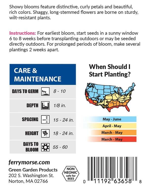 Shaggy, long-stemmed flowers are borne on sturdy, wilt-resistant plants. These aster seeds will bear beautiful blooms adding long-lasting color to your garden.
