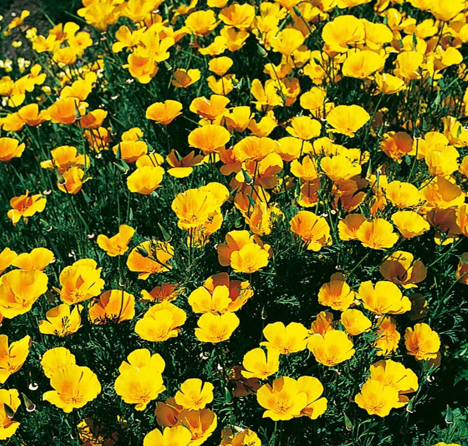 Poppies flower early on erect, slender stems above lacy blue-grey foliage. Compact plants are drought-tolerant and sturdy despite their delicate appearance. These plants are designed to thrive in challenging conditions, making them the ideal choice for areas with limited water resources.