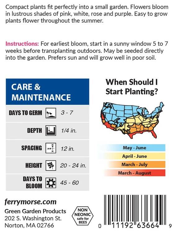 Flowers bloom in lustrous shades of pink, white, rose, and purple. Easy to grow, these plants flower throughout the summer! The blossoms can provide a vivid burst of color in any garden, lasting until the first frost.