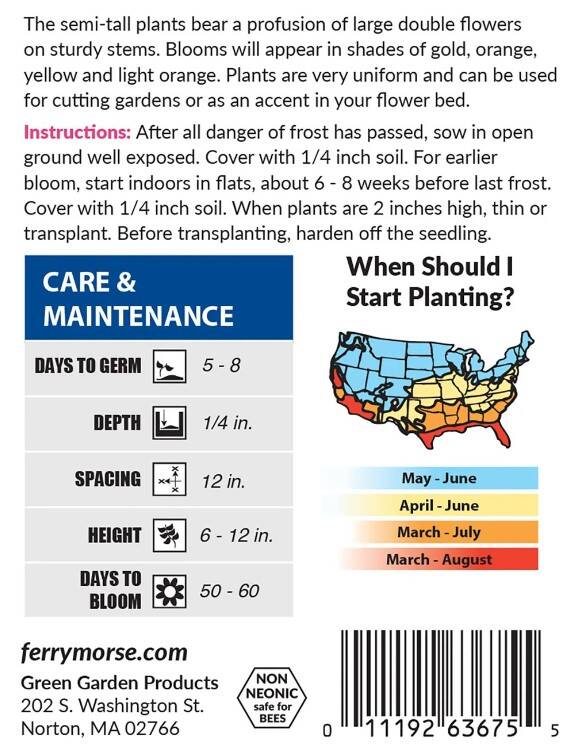 Marigolds boast large flower heads that create a vivid display, making them ideal for flower beds or cutting gardens. These marigold seeds add a touch of natural elegance to your outdoor space. With their easy-to-grow nature and stunning blooms, they create a cheerful atmosphere from summer to fall.