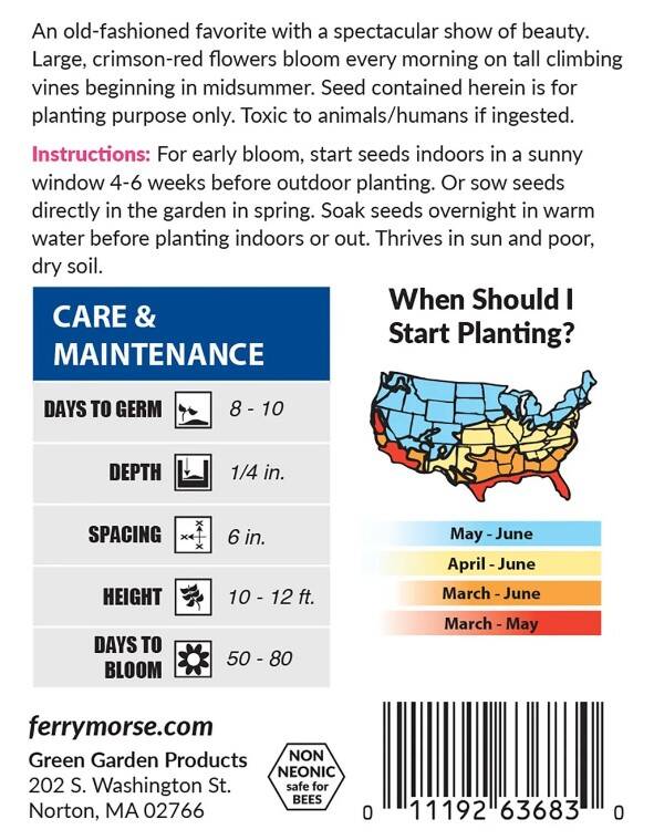 This morning glory variety has large, crimson-red colored flowers that bloom every morning on their tall vines beginning in midsummer. The vivid beauty of these flowers will make them the perfect addition to any garden, offering a colorful and unique display.