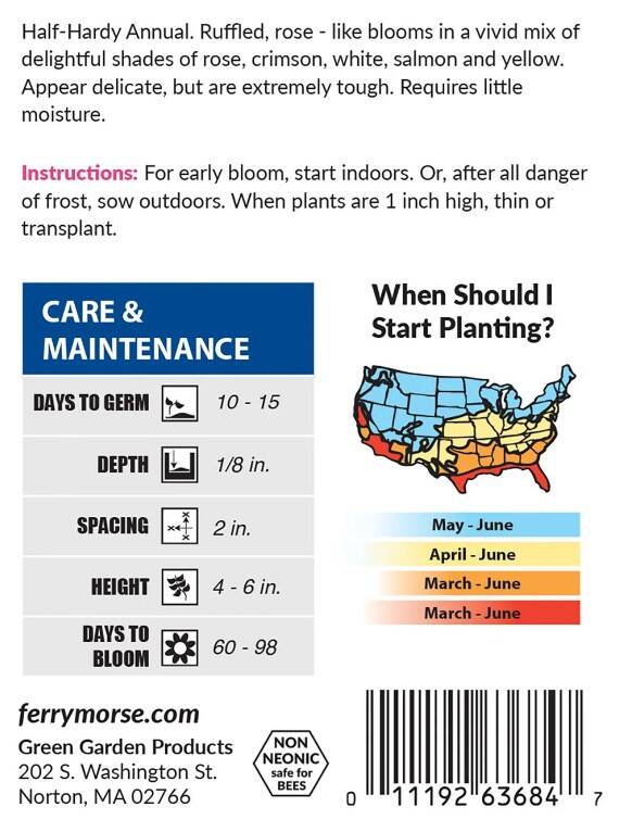 These Portulaca seeds grow into plants that bloom in stunning colors and textures, providing a reliable burst of beauty all summer. They require little moisture.