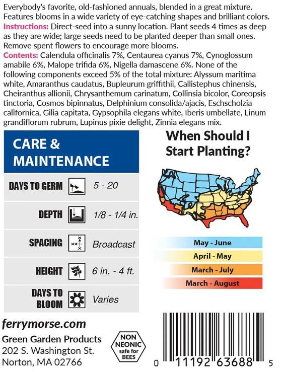 Plants will bloom in a wide variety of eye-catching shapes and brilliant colors. You'll delight in the brightly-colored mix of flowers in your garden, perfect for cutting and displaying indoors or outdoors.