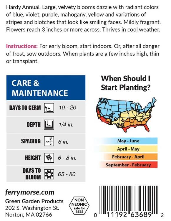 Plant these pansy seeds in either spring or fall for optimal growth; their heat and cold tolerance make them suitable for any region. This hardy annual grows well in various environments, so you can enjoy it wherever you live.