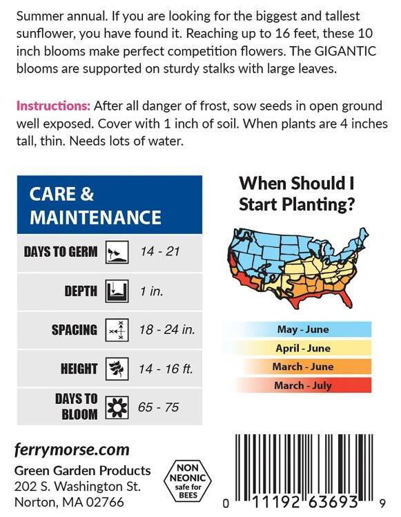 If you are looking for the tallest and most prominent sunflower, this is the variety for you! American Giant Sunflower can reach up to 16 feet tall with 10-inch-wide blooms.