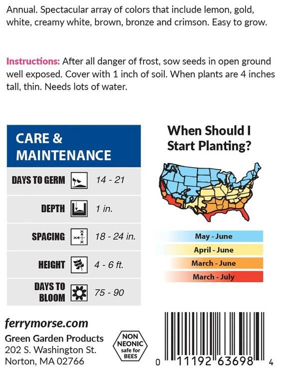 • Growing Height: 36-72 inch