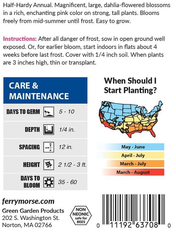 Flower & Vegetable Seed Type Zinnia Seed