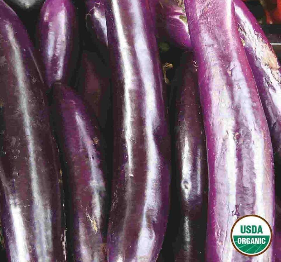 Organic Early Long Purple Eggplant seeds will soon bring you long, slightly bulbous purple eggplants. When this organic eggplant matures, its coloring will deepen to a rich purple. This variety is known for its high iron content and antioxidants. These slender purple eggplants are low in calories and high in vitamins A, B, and C.