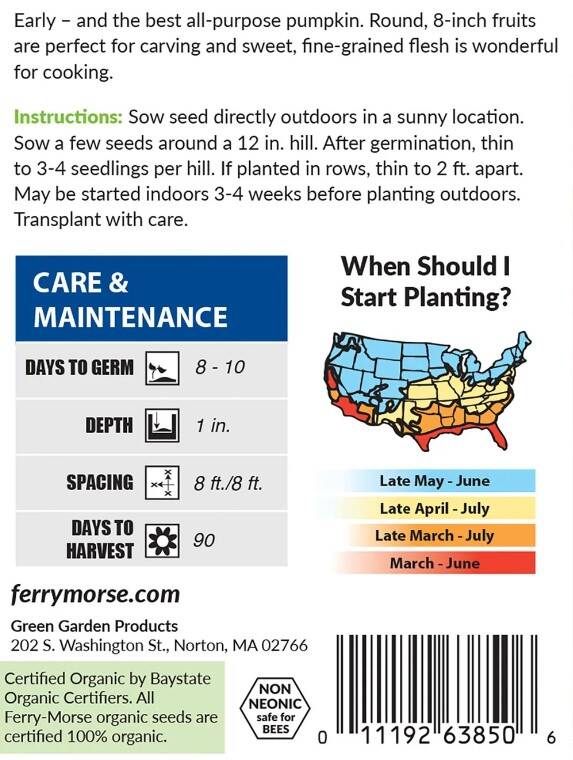 Pumpkin Early Sugar or Pie Organic