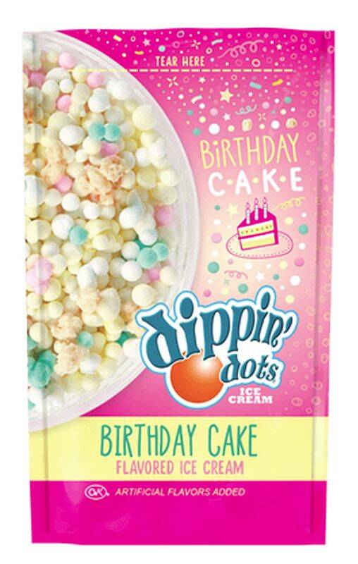 What's better than cake and ice cream??á How about cake?áIN ice cream!?á Birthday Cake Dippin' Dots are a blend of White & Yellow Cake Batter Ice Cream, Icing flavored Ice Cream and Cake Bits!?á Who wants seconds?!