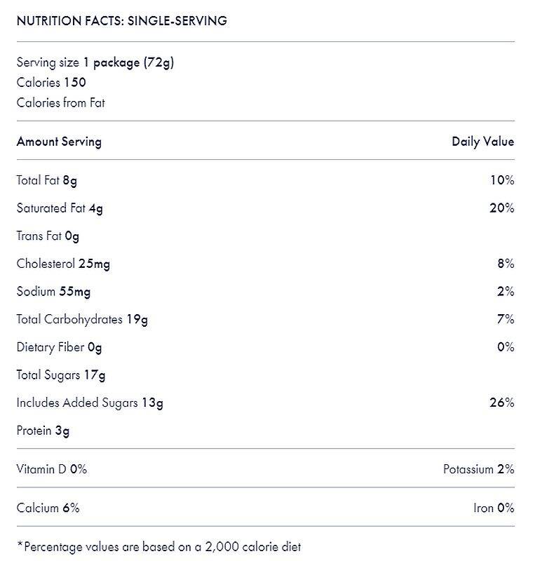 | Size | Single Serve: 72 grams (2.539 oz) |