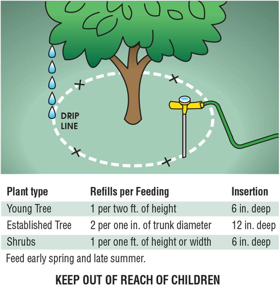 Make sure you have healthy, beautiful trees all season long with Ross Root Feeder Refills for Trees and Shrubs. Use refills in your Ross Root Feeder to get the perfect balance of nutrients directly to plants' roots - while you water at the same time! The refills are a special high-nitrogen formula for deciduous trees and shrubs. These premeasured refills make for fast, easy, mess-free fertilizing. 36 Pack Fertilize Analysis: 25-10-10 Fertilize at the roots Easy to use formula for trees and shrubs No mixing or measuring When to apply: spring, summer, and fall Ideal for: trees and shrubs.