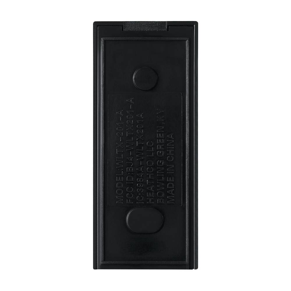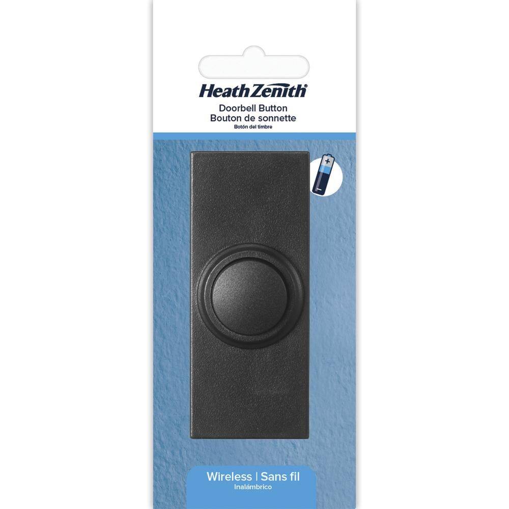 Wireless push button surface mount in black. This doorbell has a transmition range of up to 150 feet. Includes one battery operated wireless doorbell, one 3V battery, two screws, double-sided tape, and a jumper.